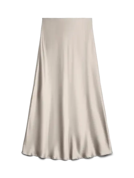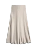 Ankel lang nederdel i creme farvet, den har det klassiske skinnende look og elastik i taljen